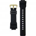 Esta bracelete de relógio G-Shock é feita de resina e está fixada ao relógio através de pinos de pressão. A bracelete tem uma largura de 26 mm e fecha através de fecho. A bracelete não tem uma montagem a direito, o que significa que esta bracelete só é adequada para os relógios listados abaixo.