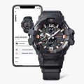 Este relógio G-Shock tem uma caixa de Resina reforçada com carbono com um diâmetro de 54.7 mm e está equipado com uma bracelete de Plástico de origem biológica. A caixa possui um movimento Casio e o relógio tem um vidro Mineral.