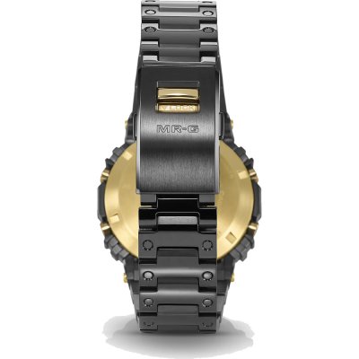 O design dos relógios MRG-B5000 da coleção premium do G-Shock é baseado no primeiro G-Shock de 1983. O padrão de tijolos no mostrador simboliza sua resistência ao choque; Atire um G-Shock contra uma parede e ele ainda continua a funcionar. Seguindo esta tradição, os artesãos da fábrica exclusiva da Casio em Yamagata, onde os relógios premium MR-G ainda são em grande parte produzidos à mão, passaram por um verdadeiro teste de habilidade em metalurgia com esta série. Em todos os detalhes, estes relógios tem o melhor acabamento absoluto, o que aumenta ainda mais a resistência ao choque do G-Shock. A caixa é feita de uma liga de titânio Ti64 super dura e apresenta uma luneta feita de COBARION®. Esta é uma liga de cromo-cobalto que é nada menos que quatro vezes mais dura que o titânio puro. As 25 partes da luneta são individualmente polidas e aparafusadas para uma aparência altamente detalhada e impecável. Molas e amortecedores de silicone também garantem excelente absorção de choques e proteção do movimento MRG com tampa traseira banhada a ouro. A bracelete também é feita de uma liga de titânio, DAT55G, que é três vezes mais dura que o titânio puro e altamente resistente a arranhões e impactos. Os rebites são aparafusados manualmente na bracelete, ao contrário de outras séries G-Shock onde os rebites são fundidos. O MRG-B5000B-1DR é o que mais se aproxima do design original dos anos 80 com detalhes em vermelho, alojado numa caixa em preto profundo com acabamento polido e revestimento DLC (diamante como carbono) com acabamento brilhante. O desempenho funcional do relógio também é excelente, com calibração de tempo controlada por rádio e emparelhamento de smartphone via Bluetooth®.