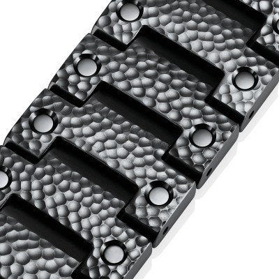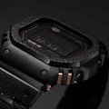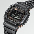 A luneta e a bracelete marteladas são feitas de DAT55G, uma liga especial de titânio do Japão que é três vezes mais dura do que o titânio puro. Cada peça é fabricada à mão pelo mestre tsuiki Kazuya Watanabe. O padrão único de cada relógio é criado pela forma do seu cinzel e pela força com que o golpeia. A caixa tem uma cor cinzenta prateada com um brilho subtil, inspirada nos detalhes tradicionais das espadas. Graças a um revestimento DLC duro, este aspeto também é preservado. Os parafusos e botões cor de cobre acrescentam um toque luxuoso e marcante ao design. Uma poderosa peça de afirmação que combina a estética tradicional japonesa com a pura robustez G-SHOCK. Este MR-G pertence, por direito, aos modelos de topo absoluto da marca.