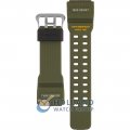 Esta bracelete de relógio G-Shock é feita de resina e está fixada ao relógio através de pinos de pressão. A bracelete tem uma largura de 28 mm e fecha através de fecho. A bracelete não tem uma montagem a direito, o que significa que esta bracelete só é adequada para os relógios listados abaixo.