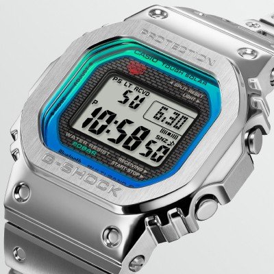 Este relógio G-Shock tem uma caixa de Inox com um diâmetro de 43.2 mm e está equipado com uma bracelete de metal. A caixa possui um movimento Casio e o relógio tem um vidro Mineral.