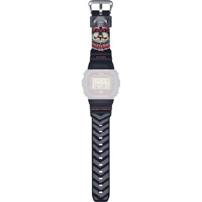 Esta bracelete de relógio G-Shock é feita de resina e está fixada ao relógio através de pinos de pressão. A bracelete tem uma largura de 26 mm e fecha através de fecho. A bracelete não tem uma montagem a direito, o que significa que esta bracelete só é adequada para os relógios listados abaixo.
