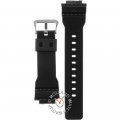 Esta bracelete de relógio G-Shock é feita de resina e está fixada ao relógio através de pinos de pressão. A bracelete tem uma largura de 25 mm e fecha através de fecho. A bracelete não tem uma montagem a direito, o que significa que esta bracelete só é adequada para os relógios listados abaixo.
