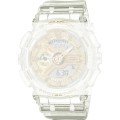 Esta bracelete de relógio G-Shock é feita de resina e está fixada ao relógio através de pinos de pressão. A bracelete tem uma largura de 25 mm e fecha através de fecho. A bracelete não tem uma montagem a direito, o que significa que esta bracelete só é adequada para os relógios listados abaixo.