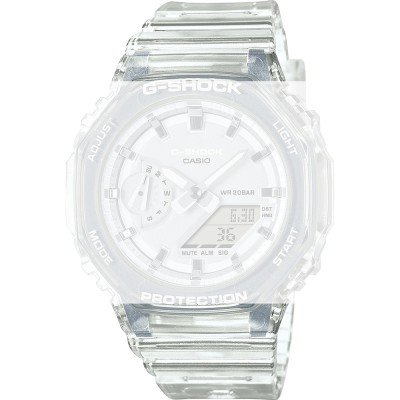 Esta bracelete de relógio G-Shock é feita de resina e está fixada ao relógio através de pinos carregados por mola de liberação rápida. A bracelete tem uma largura de 24 mm e fecha através de fecho. A bracelete não tem uma montagem a direito, o que significa que esta bracelete só é adequada para os relógios listados abaixo.