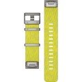 Esta bracelete de relógio Garmin é feita de nylon e está fixada ao relógio através de quickFit. A bracelete tem uma largura de 22 mm e fecha através de fecho. A bracelete tem uma montagem a direito, o que significa que esta bracelete é adequada para todos os relógios Garmin com montagem da bracelete a direito.