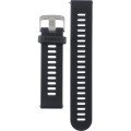 Esta bracelete de relógio Garmin é feita de silicone e está fixada ao relógio através de pinos carregados por mola de liberação rápida. A bracelete tem uma largura de 20 mm e fecha através de fecho. A bracelete tem uma montagem a direito, o que significa que esta bracelete é adequada para todos os relógios Garmin com montagem da bracelete a direito.