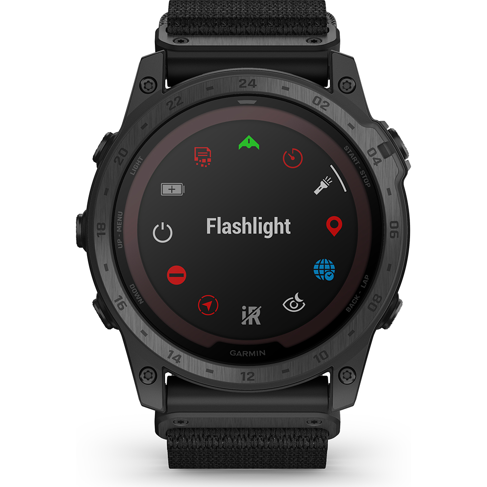 O Garmin Tactix 7 (edição pro) é um relógio GPS tático que funciona com energia solar e dura até 28 dias no modo smartwatch. As caraterísticas tácticas específicas deste smartwatch de aventura são a visão nocturna, a referenciação por satélite multi-GNSS e vários outros sensores de exterior. Os controlos tradicionais por botões funcionam em conjunto com a interface do ecrã tátil para um acesso rápido às selecções e funções. Todos os relógios Garmin Tactix são testados de acordo com a norma militar MIL-STD-810. As suas principais caraterísticas incluem: