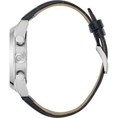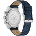 Este relógio GC tem uma caixa de Inox com um diâmetro de 42 mm e está equipado com uma bracelete de couro. A caixa possui um movimento Ronda e o relógio tem um vidro Safira.