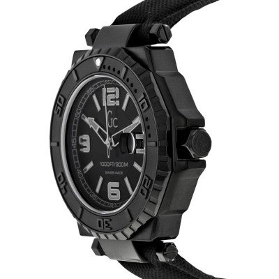 Este relógio GC tem uma caixa de Inox com um diâmetro de 44 mm e está equipado com uma bracelete de couro. A caixa possui um movimento Ronda e o relógio tem um vidro Safira.
