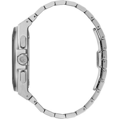 Este relógio GC tem uma caixa de Inox com um diâmetro de 44 mm e está equipado com uma bracelete de Inox. A caixa possui um movimento Ronda e o relógio tem um vidro Mineral revestido a safira.