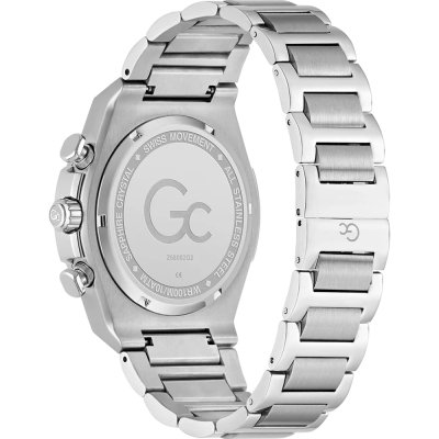 Este relógio GC tem uma caixa de Inox com um diâmetro de 45 mm e está equipado com uma bracelete de Inox. A caixa possui um movimento e o relógio tem um vidro Safira.