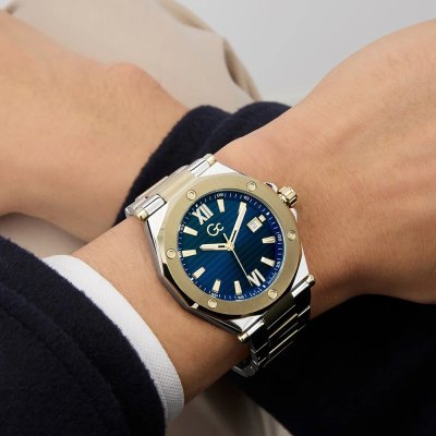 Este relógio GC tem uma caixa de Inox com um diâmetro de 42 mm e está equipado com uma bracelete de Inox. A caixa possui um movimento e o relógio tem um vidro Safira.