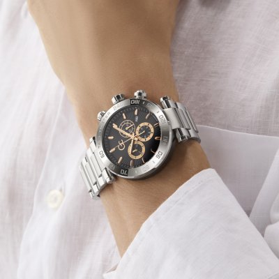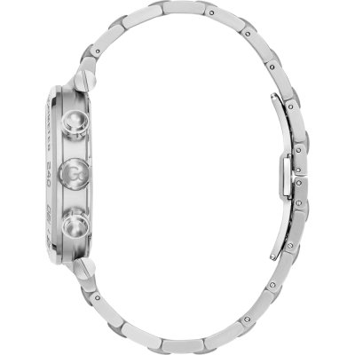 Este relógio GC tem uma caixa de Inox com um diâmetro de 44 mm e está equipado com uma bracelete de Inox. A caixa possui um movimento Ronda e o relógio tem um vidro Safira.