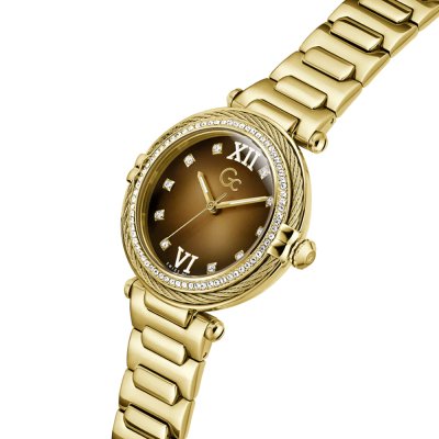 Este relógio GC tem uma caixa de Inox com um diâmetro de 36.5 mm e está equipado com uma bracelete de Inox. A caixa possui um movimento Ronda e o relógio tem um vidro Mineral revestido a safira.