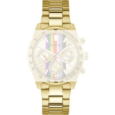 Esta bracelete de relógio Guess é feita de aço inoxidável e está fixada ao relógio através de pinos de pressão. A bracelete tem uma largura de 22 mm e fecha através de fivela dobrável com segurança. A bracelete não tem uma montagem a direito, o que significa que esta bracelete só é adequada para os relógios listados abaixo.