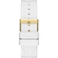 Esta bracelete de relógio Guess é feita de silicone e está fixada ao relógio através de pinos de pressão. A bracelete tem uma largura de 20 mm e fecha através de fecho. A bracelete não tem uma montagem a direito, o que significa que esta bracelete só é adequada para os relógios listados abaixo.
