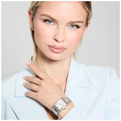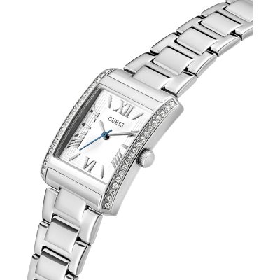 Este relógio Guess tem uma caixa de Inox com um diâmetro de 27 mm e está equipado com uma bracelete de Inox. A caixa possui um movimento Seiko e o relógio tem um vidro Mineral.