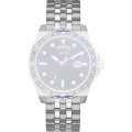 Esta bracelete de relógio Guess é feita de metal e está fixada ao relógio através de pinos de pressão. A bracelete tem uma largura de 22 mm e fecha através de fivela dobrável com botões de pressão. A bracelete não tem uma montagem a direito, o que significa que esta bracelete só é adequada para os relógios listados abaixo.