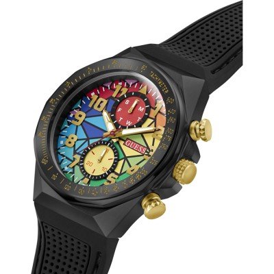Este relógio Guess tem uma caixa de Inox com um diâmetro de 48 mm e está equipado com uma bracelete de borracha.