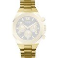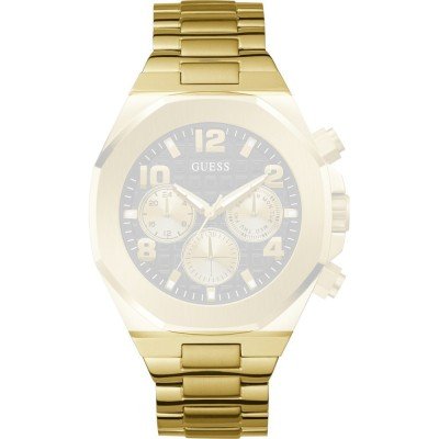 Esta bracelete de relógio Guess é feita de aço inoxidável e está fixada ao relógio através de pinos de pressão. A bracelete tem uma largura de 27 mm e fecha através de fivela dobrável com botões de pressão. A bracelete não tem uma montagem a direito, o que significa que esta bracelete só é adequada para os relógios listados abaixo.