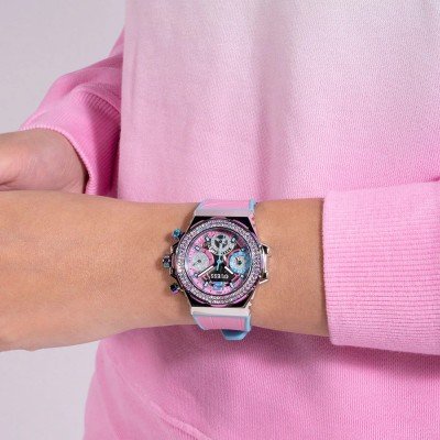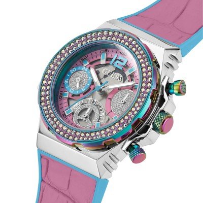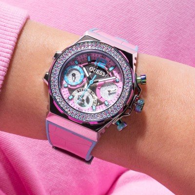 Este relógio Guess tem uma caixa de Inox com um diâmetro de 36 mm e está equipado com uma bracelete de borracha. A caixa possui um movimento Seiko Instruments Inc. e o relógio tem um vidro Mineral.