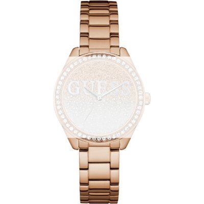 Esta bracelete de relógio Guess é feita de aço inoxidável e está fixada ao relógio através de pinos de pressão. A bracelete tem uma largura de 16 mm e fecha através de fivela dobrável. A bracelete não tem uma montagem a direito, o que significa que esta bracelete só é adequada para os relógios listados abaixo.