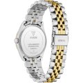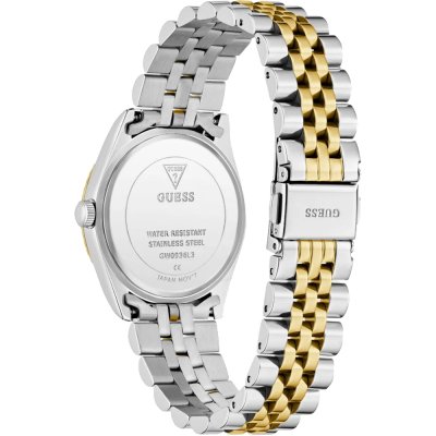 Este relógio Guess tem uma caixa de Inox com um diâmetro de 34 mm e está equipado com uma bracelete de Inox. A caixa possui um movimento Seiko Instruments Inc. e o relógio tem um vidro Mineral.