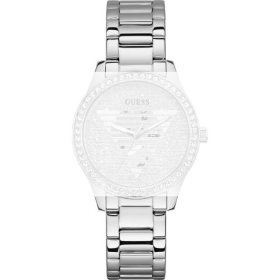 Esta bracelete de relógio Guess é feita de aço inoxidável e está fixada ao relógio através de pinos de pressão. A bracelete tem uma largura de 18 mm e fecha através de fivela dobrável com botões de pressão. A bracelete não tem uma montagem a direito, o que significa que esta bracelete só é adequada para os relógios listados abaixo.