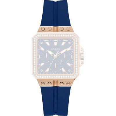 Esta bracelete de relógio Guess é feita de silicone e está fixada ao relógio através de pinos em aço. A bracelete tem uma largura de 22 mm e fecha através de fecho. A bracelete não tem uma montagem a direito, o que significa que esta bracelete só é adequada para os relógios listados abaixo.