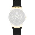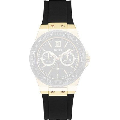 Esta bracelete de relógio Guess é feita de silicone e está fixada ao relógio através de pinos de pressão. A bracelete tem uma largura de 23 mm e fecha através de fecho. A bracelete não tem uma montagem a direito, o que significa que esta bracelete só é adequada para os relógios listados abaixo.