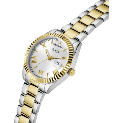 Este relógio Guess tem uma caixa de Inox com um diâmetro de 36 mm e está equipado com uma bracelete de metal.
