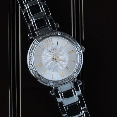 Este relógio Guess tem uma caixa de Inox com um diâmetro de 30 mm e está equipado com uma bracelete de Inox. A caixa possui um movimento Seiko e o relógio tem um vidro Mineral.