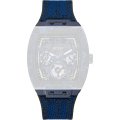 Esta bracelete de relógio Guess é feita de silicone e está fixada ao relógio através de pinos de pressão. A bracelete tem uma largura de 29 mm e fecha através de fecho. A bracelete não tem uma montagem a direito, o que significa que esta bracelete só é adequada para os relógios listados abaixo.