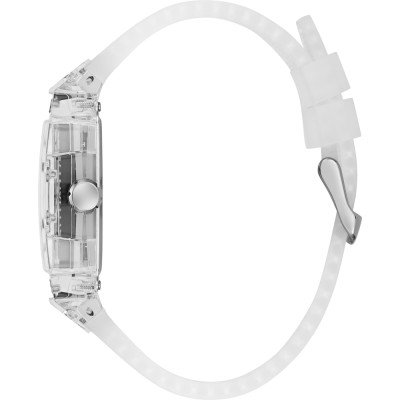 Este relógio Guess tem uma caixa de Inox com um diâmetro de 43 mm e está equipado com uma bracelete de borracha.