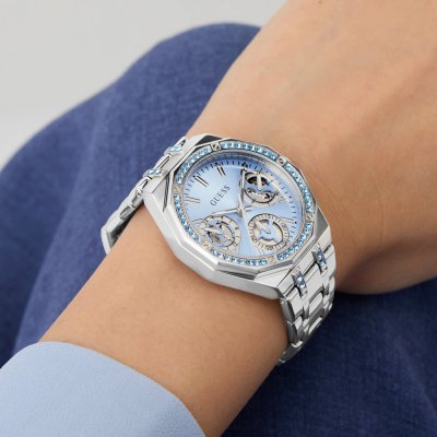 Este relógio Guess tem uma caixa de Inox com um diâmetro de 36 mm e está equipado com uma bracelete de Inox. A caixa possui um movimento Seiko Instruments Inc. e o relógio tem um vidro Mineral.