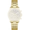 Esta bracelete de relógio Guess é feita de metal e está fixada ao relógio através de pinos de pressão. A bracelete tem uma largura de 18 mm e fecha através de fivela dobrável com botões de pressão. A bracelete não tem uma montagem a direito, o que significa que esta bracelete só é adequada para os relógios listados abaixo.