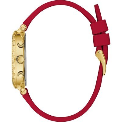 Este relógio Guess tem uma caixa de Inox com um diâmetro de 37 mm e está equipado com uma bracelete de borracha.