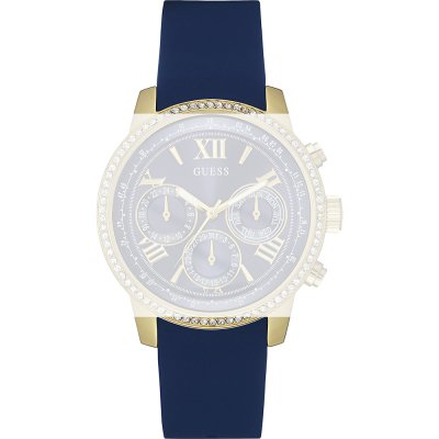 Esta bracelete de relógio Guess é feita de silicone / Borracha e está fixada ao relógio através de pinos de pressão. A bracelete tem uma largura de 20 mm e fecha através de fecho. A bracelete tem uma montagem a direito, o que significa que esta bracelete é adequada para todos os relógios Guess com montagem da bracelete a direito.