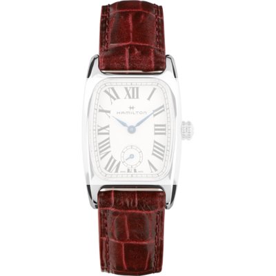 Esta bracelete de relógio Hamilton é feita de couro e está fixada ao relógio através de pinos carregados por mola de liberação rápida. A bracelete tem uma largura de 16 mm e fecha através de fecho. A bracelete tem uma montagem a direito, o que significa que esta bracelete é adequada para todos os relógios Hamilton com montagem da bracelete a direito.