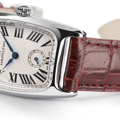 Este relógio Hamilton tem uma caixa de Inox com um diâmetro de 23.5 mm e está equipado com uma bracelete de couro. A caixa possui um movimento ETA e o relógio tem um vidro Safira.