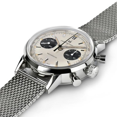 O Hamilton Intra-Matic Chrono H tem uma agradável vibração retrô que não é surpreendente, porque o design é baseado em um cronógrafo de mesmo nome de 1968. Marcadores retangulares aplicados com lúmen formam os índices das horas. Ao redor da escala de horas há uma escala de taquímetro que inclui marcações brancas finas. As mãos são estilo bastão e possuem lúmen aplicado (patinado falso). Somando-se à vibração esportiva dos anos 60, estão os botões de pistão altos, a coroa de caixa de comprimidos assinada e o bisel polido com uma caixa de cristal de safira completando o visual. A caixa de 40 mm de tamanho contemporâneo é totalmente polida com alças angulares para baixo para uso confortável e resistência à água de 10 ATM. Alimentando este relógio está um movimento Hamilton H-51 enrolado à mão com uma espiral Nivachron antimagnética que oferece uma reserva de energia estendida de cerca de 60 horas.