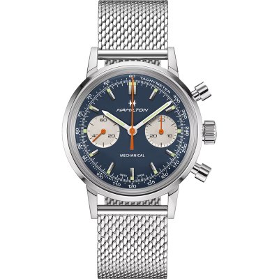 Este relógio Hamilton tem uma caixa de Inox com um diâmetro de 40 mm e está equipado com uma bracelete de couro. A caixa possui um movimento ETA e o relógio tem um vidro Safira dupla anti-reflexo.