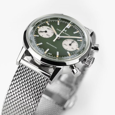 Este relógio Hamilton tem uma caixa de Inox com um diâmetro de 40 mm e está equipado com uma bracelete de couro. A caixa possui um movimento ETA e o relógio tem um vidro Safira dupla anti-reflexo.