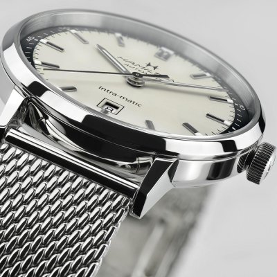Este relógio Hamilton tem uma caixa de Inox com um diâmetro de 40 mm e está equipado com uma bracelete de Inox. A caixa possui um movimento ETA e o relógio tem um vidro Safira.