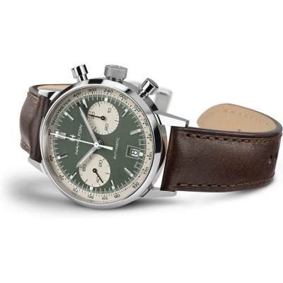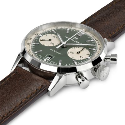 O Intra-Matic Auto Chrono é uma interpretação moderna de um relógio clássico do catálogo Hamilton de 1968. O design desportivo, mas clássico, com mostradores de cronómetro caraterísticos é marcante e elegante ao mesmo tempo. O relógio de inspiração vintage é fornecido com uma bracelete de malha de aço inoxidável finamente tecida ou uma bracelete de pele flexível para o máximo conforto e estilo.