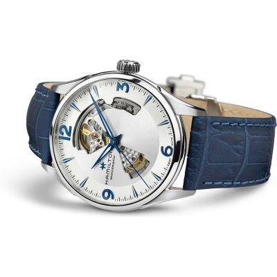O Hamilton Jazzmaster Viewmatic equilibra perfeitamente o formal e o desportivo, combinando uma caixa lindamente acabada com uma mistura de superfícies polidas e escovadas e um intrigante mostrador de coração aberto exibindo os elementos mecânicos que batem por baixo. Os recortes primorosamente executados no mostrador têm uma luneta de alto polimento em transição nítida para uma borda interna escovada, direcionando o olhar para o movimento automático H-10. Este movimento Hamilton muito preciso contém uma mola de equilíbrio Nivachron não magnética e tem uma reserva de energia de nada menos que 80 horas. O Jazzmaster Viewmatic Open Heart Auto está disponível numa variedade de cores e em tamanhos de caixa de 40 mm e 36 mm, para homens e mulheres.