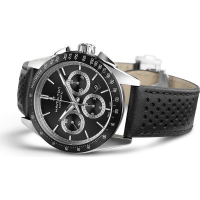 Os relógios Jazzmaster Performer são a combinação perfeita de funcionalidade desportiva e chique. O relógio é alimentado pelo movimento cronógrafo automático H-31 com uma reserva de marcha de 60 horas e mola Nivachron resistente ao magnetismo. O modelo de 42 mm é o maior da família Performer e está disponível em diferentes cores e tanto com uma bracelete em aço como com uma bracelete desportiva em pele perfurada.