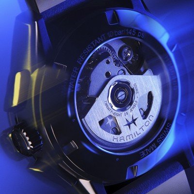 Este relógio Hamilton tem uma caixa de Inox com um diâmetro de 42 mm e está equipado com uma bracelete de couro. A caixa possui um movimento ETA e o relógio tem um vidro Safira.